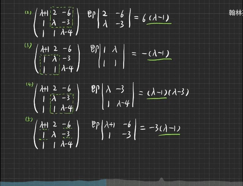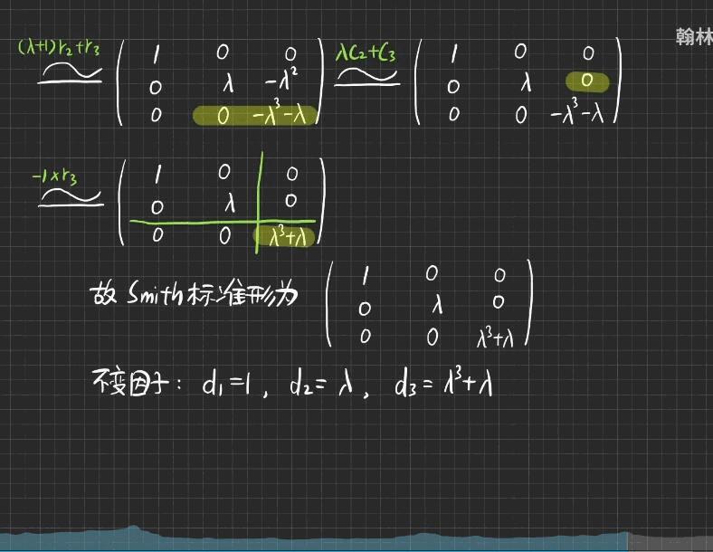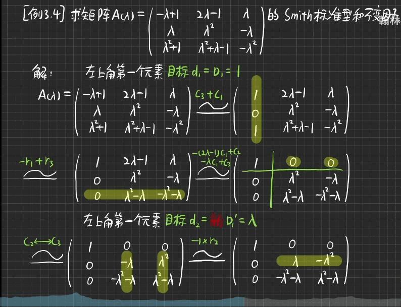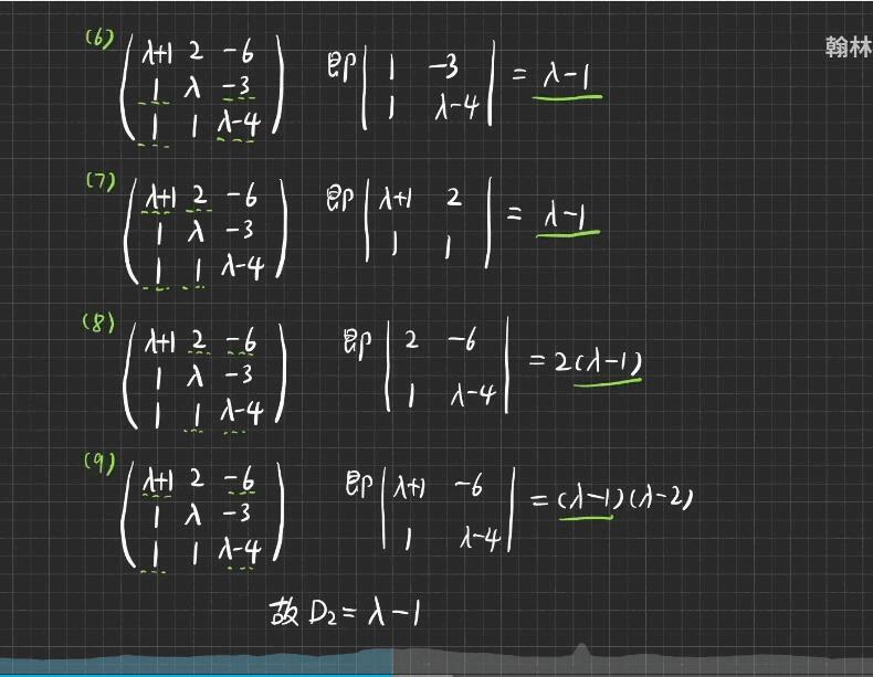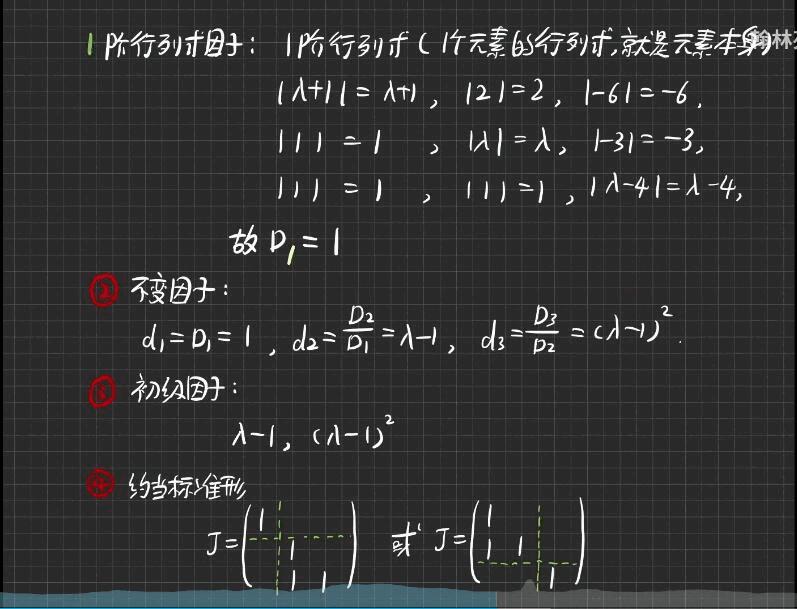 如果有 \(d_{4}=(\lambda-2)^{2}(\lambda-1)\) 的话,要拆成:\((\lambda-2)^{2}\) 和 \((\lambda-1)\),一定要拆成两个,否则结果是不对的。